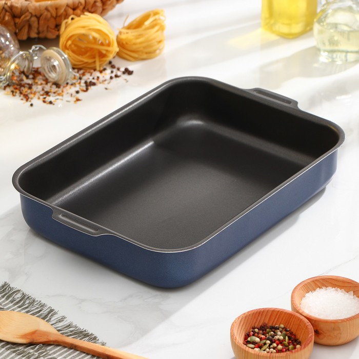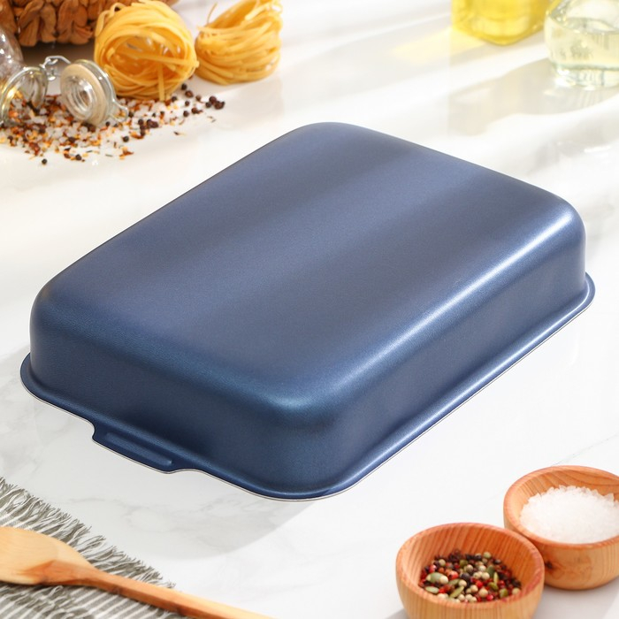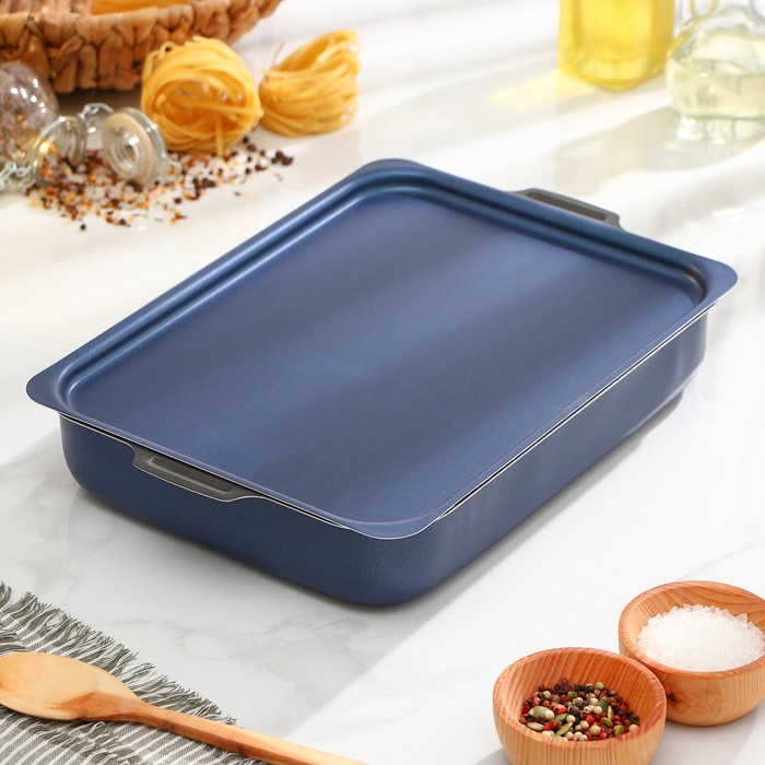 Противень прямоугольный, 23×30 см, h= 7 см, с крышкой, антипригарное покрытие, цвет синий