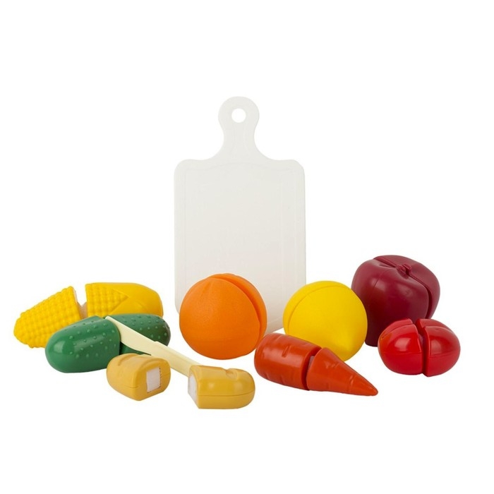Каждому ребёнку интересны игрушечные овощи и фрукты. С ними можно поиграть в магазин, в кухню и придумать множество других сюжетов. В этом наборе продукты можно разрезать с помощью игрушечного ножа. Это сделает игру ещё интереснее.