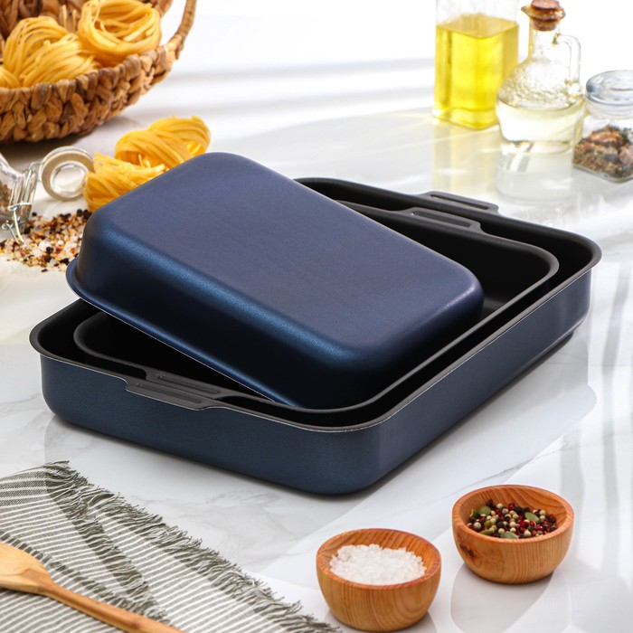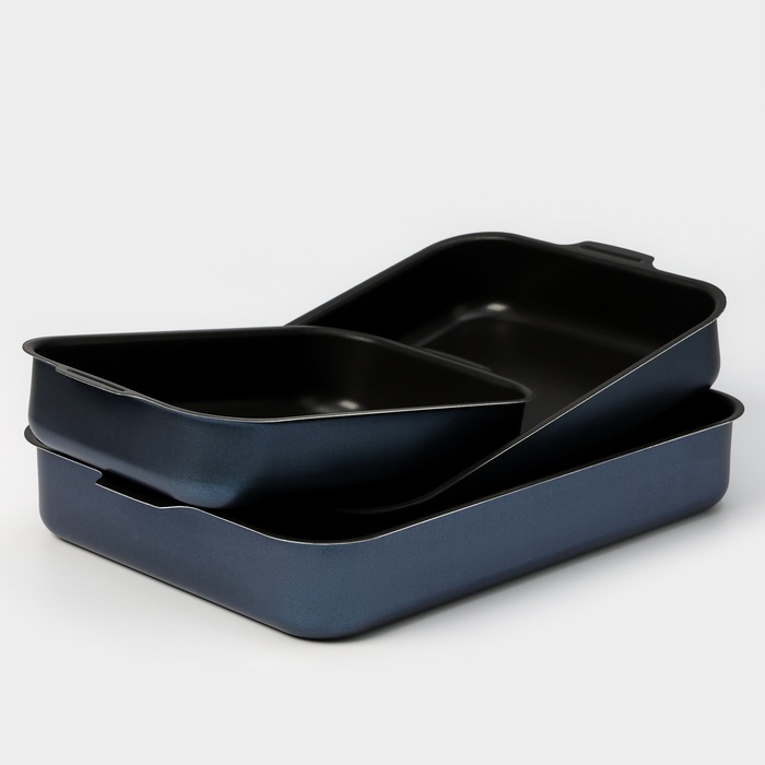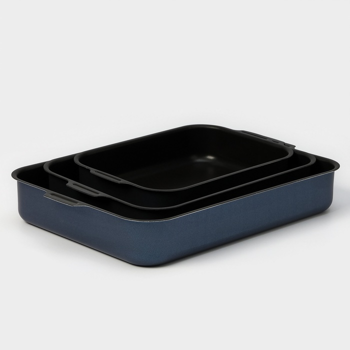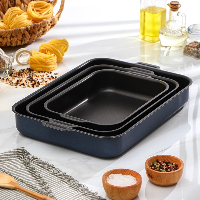 Набор противней «Лазоньера», 3 предмета: 19×25 см, 23×30 см, 27×35 см, h=7 см, антипригарное покрытие, цвет синий