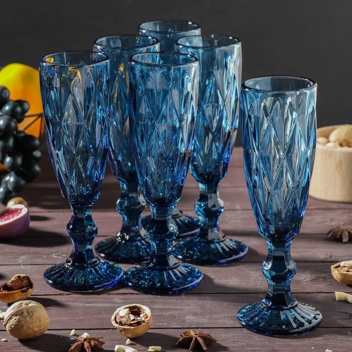 Набор бокалов из стекла для шампанского Magistro «Круиз», 160 мл, 7×20 см, 6 шт, цвет синий