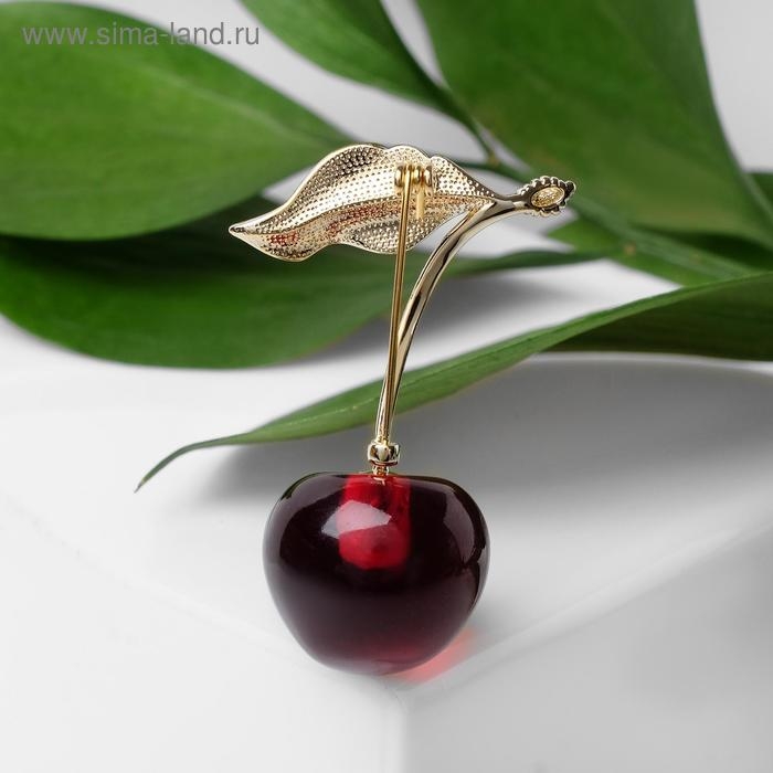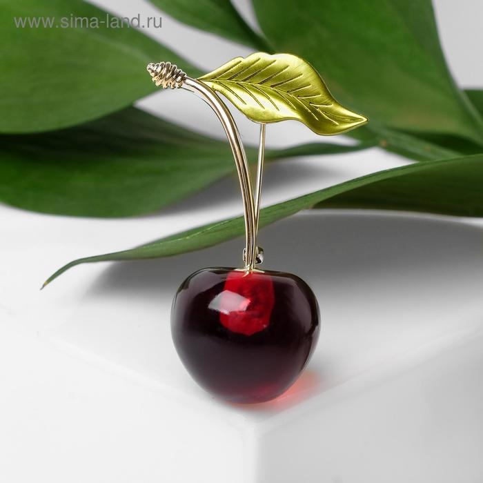 Брошь «Вишенка» с листочком, цвет бордово-зелёный в золоте