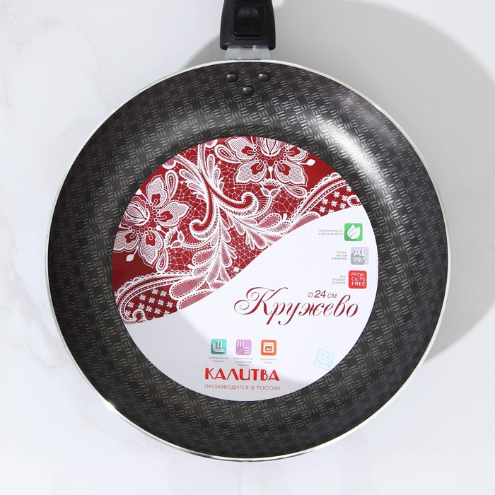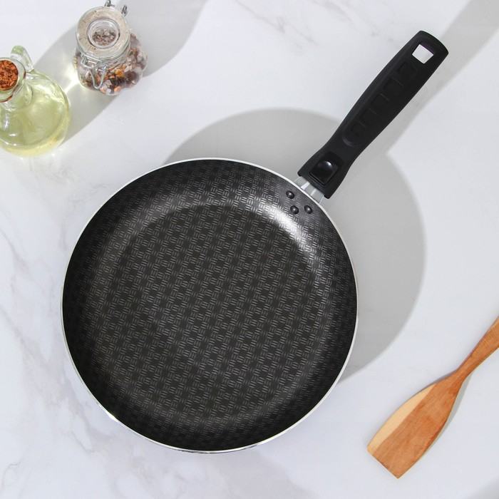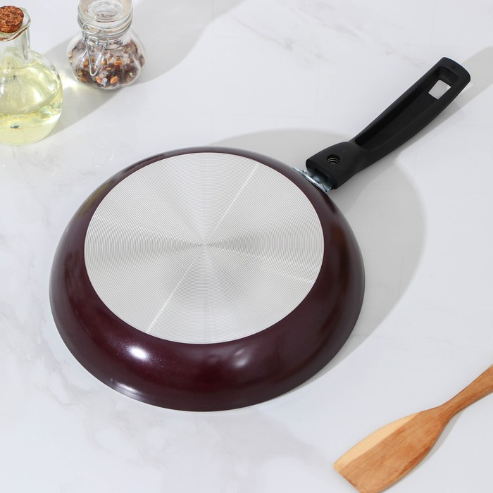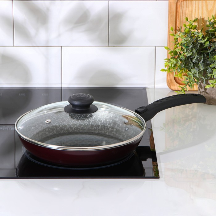 Сковорода «Хозяюшка», d=24 см, съёмная ручка, стеклянная крышка, антипригарное покрытие, цвет бордовый