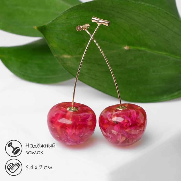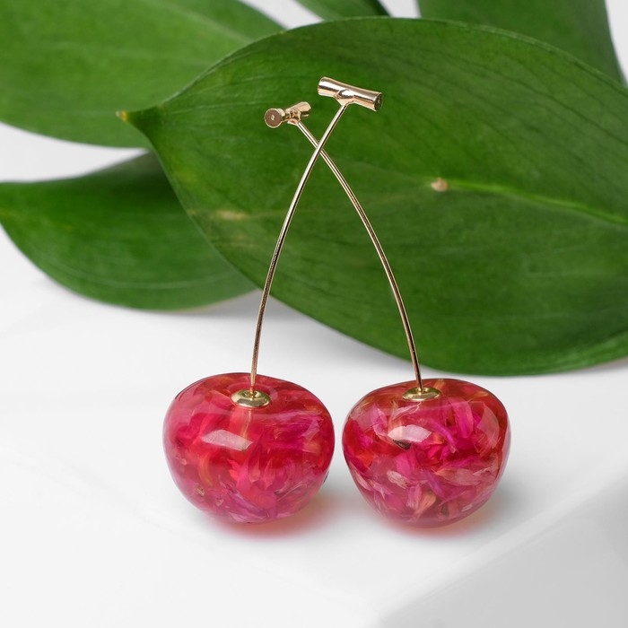 Серьги пластик «Ягодка» черешня, цвет красный в золоте