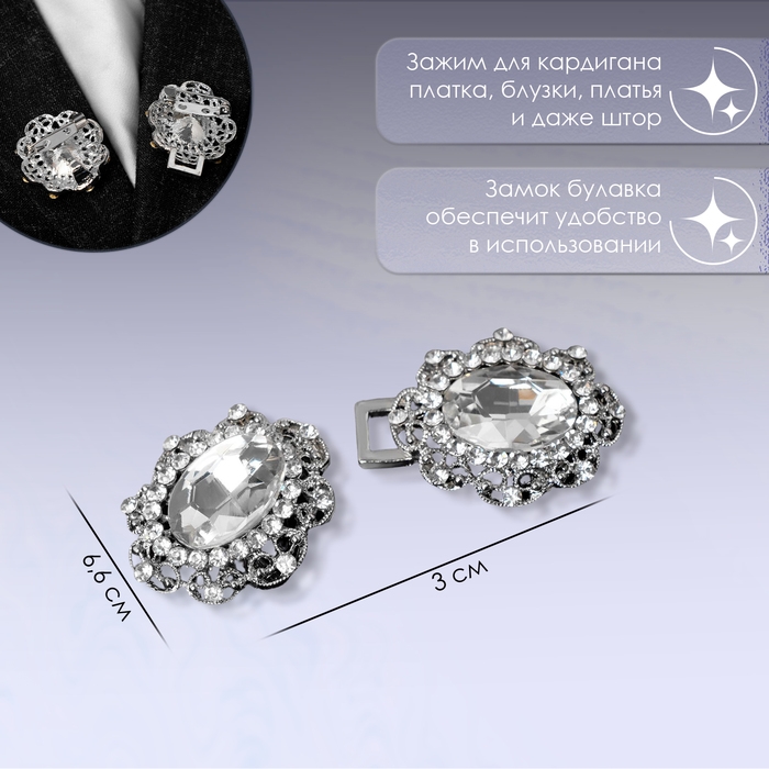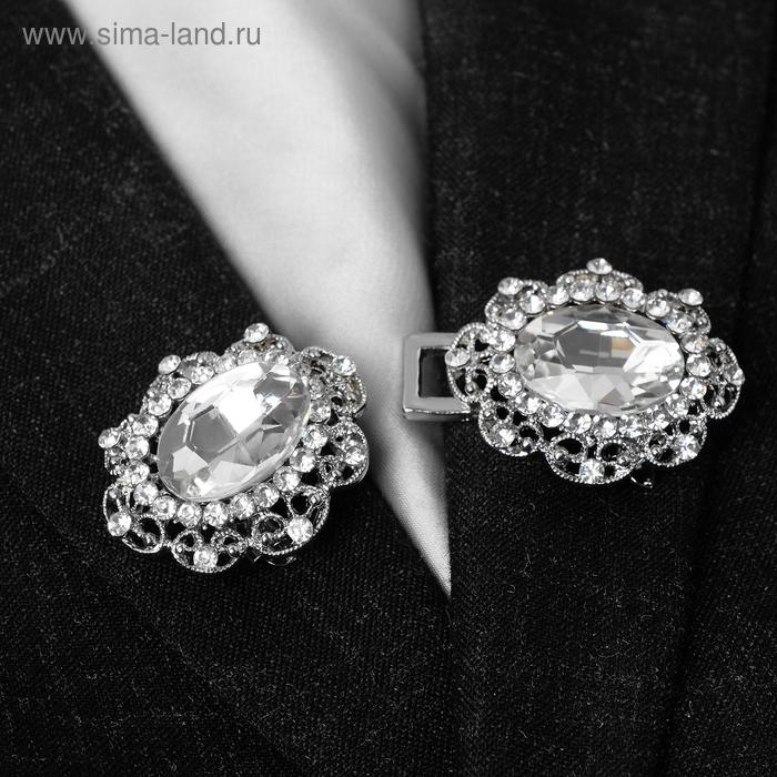Зажим для кардигана «Акцент», цвет белый в серебре