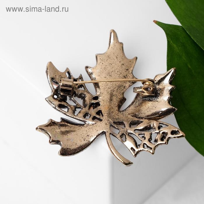 Брошь «Лист кленовый» стеклянный, цвет зелёный в чернёном золоте