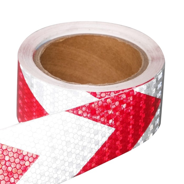Светоотражающая лента, самоклеящаяся, красно-белая, 5 см х 45 м