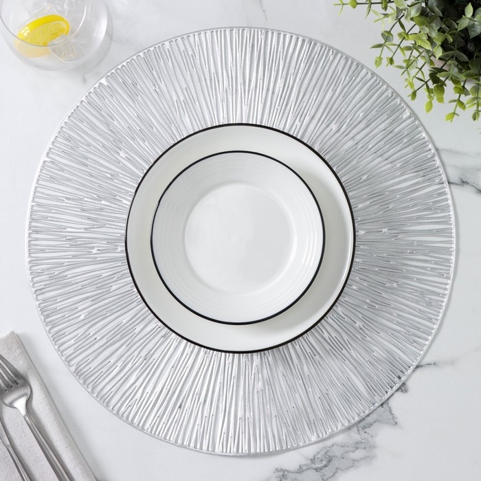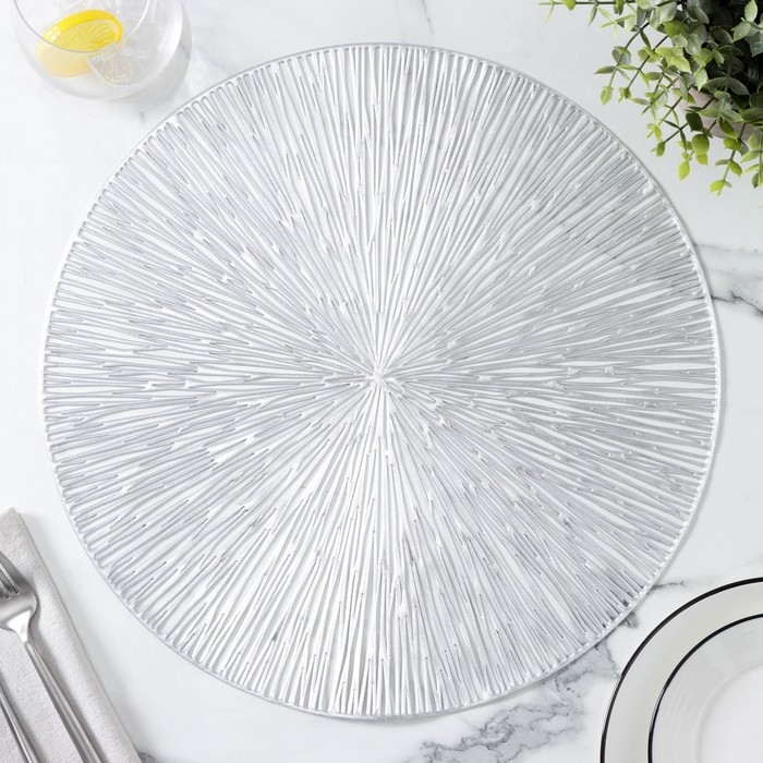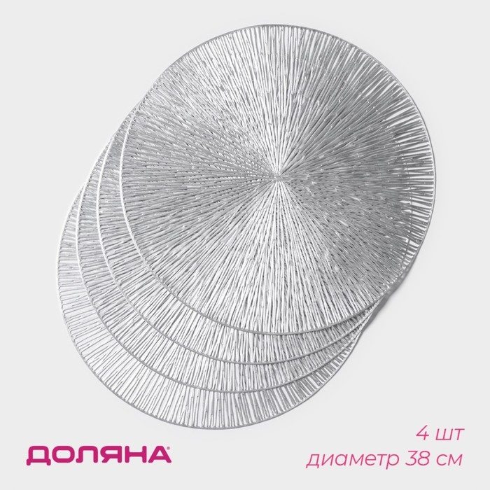 Набор салфеток сервировочных на стол Доляна «Сияние», d=38 см, 4 шт, цвет серебряный