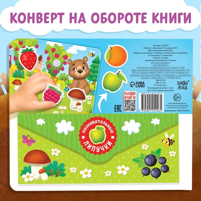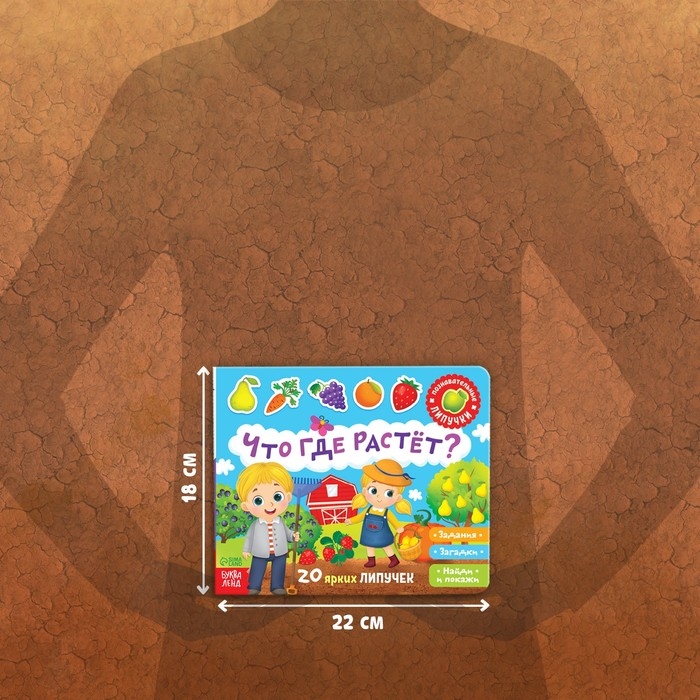 Обучающая книга с липучками «Что где растёт?» направлена на расширение кругозора у деток. Внутри ребёнок найдёт интересные задания и загадки, а также сможет поиграть в игру «Найди и покажи».