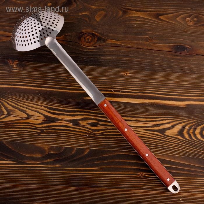 Шумовка для казана узбекская 58см, диаметр 16см, с деревянной ручкой