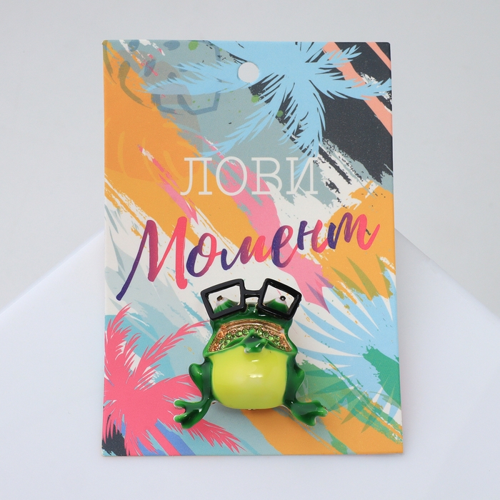 Брошь «Лягушка» крэйзи, цветная в золоте