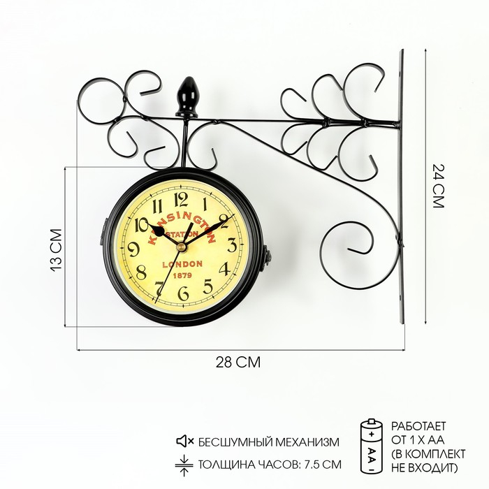 Часы настенные двусторонние, на подвесе "Тактоо", бесшумные, 24 х 30 см