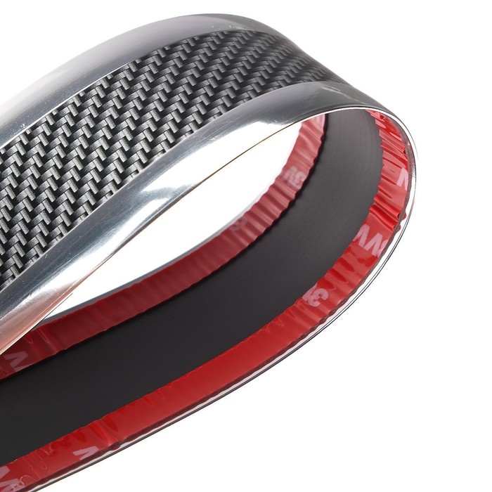 Защитная накладка на порог авто, под карбон с хром полосой, самоклеящаяся, 5×250 см