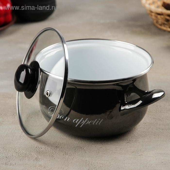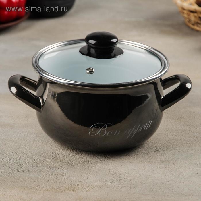 Кастрюля эмалированная «Металлик», 2,1 л, стеклянная крышка, индукция, цвет чёрный