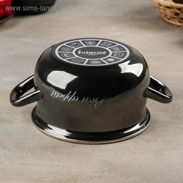 Эмалированная кастрюля Interos из качественной стали, покрытой двухслойной стеклокерамической эмалью, отлично подходит для приготовления и хранения различных блюд.