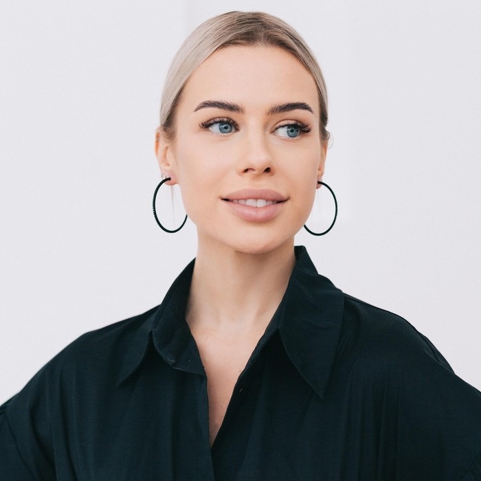 Серьги-кольца «Классика» новая d= 5 см, цвет чёрный в серебре