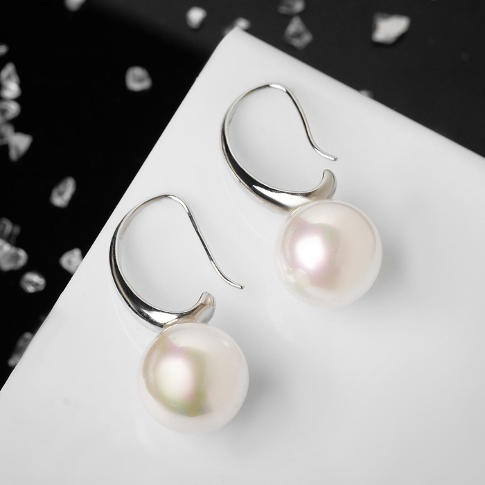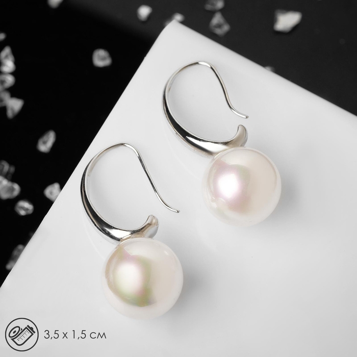 Серьги с жемчугом «Капля» полукруг, цвет белый в серебре