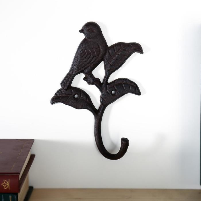 Крючок декоративный металл "Птица и листья" 18х12х4 см