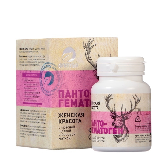 Пантогнматоген «Женская красота» с красной щёткой и боровой маткой, 30 капсул по 500 мг