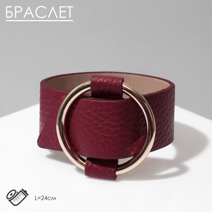 Браслет кожа «Помпеи» захват, цвет бордовый в золоте, 24 см