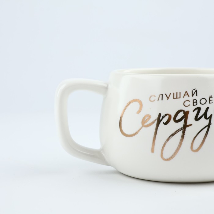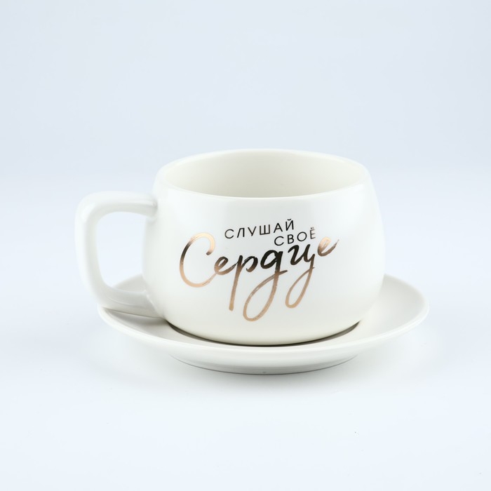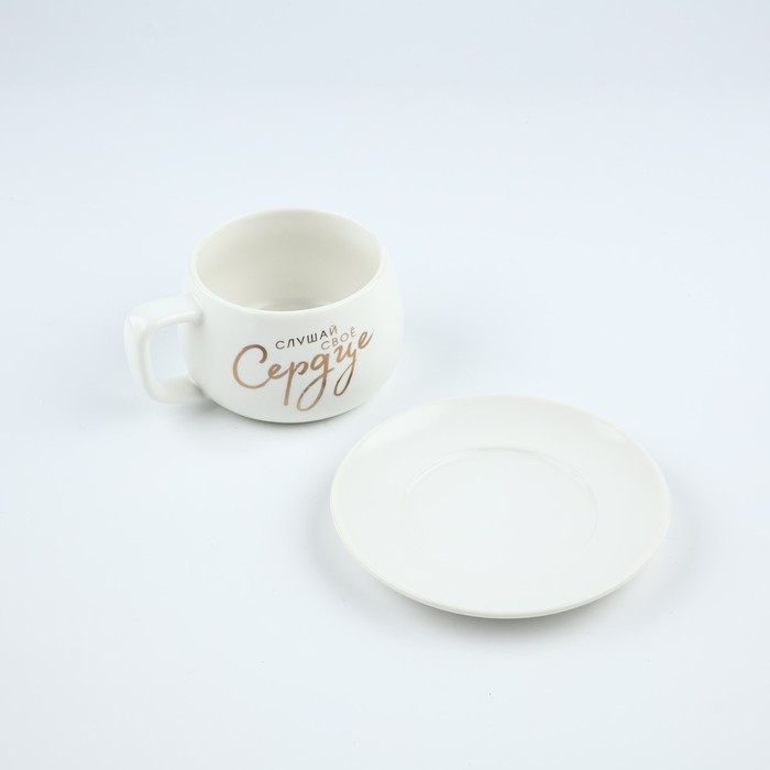 Чайная пара керамическая «Слушай своё сердце», 300 мл , цвет белый
