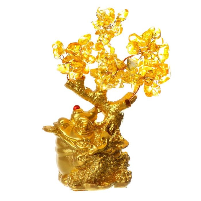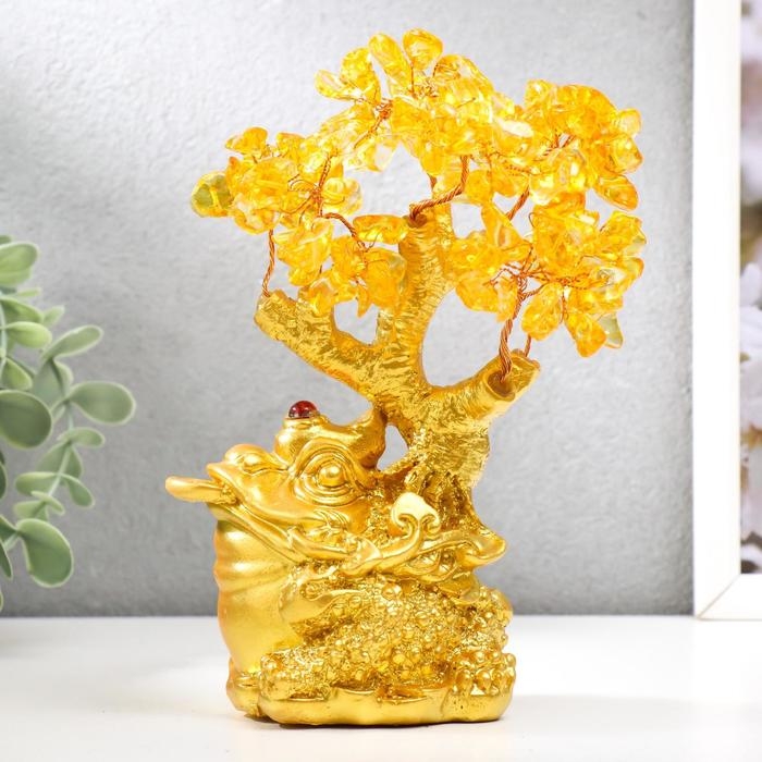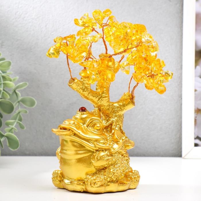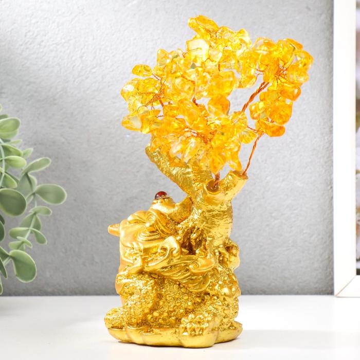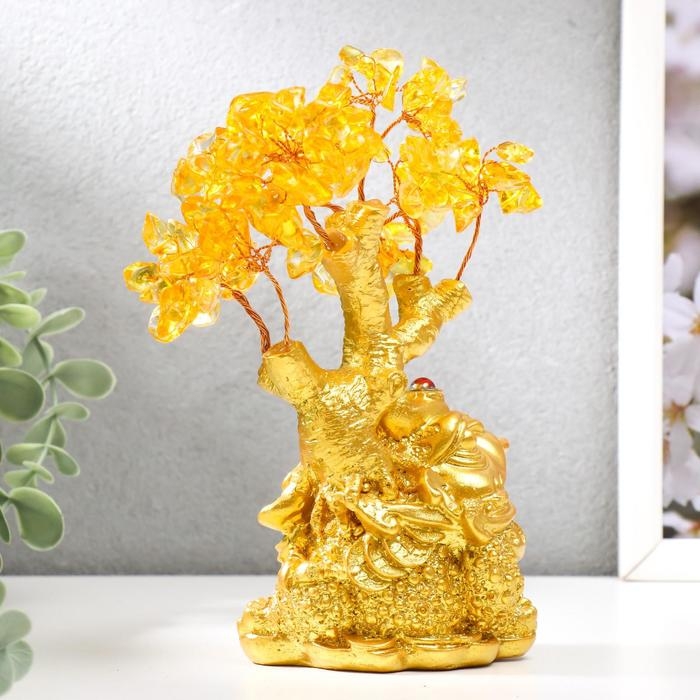Сувенир бонсай 108 камней "Денежная жаба у дерева с янтарём" 17х14х8 см