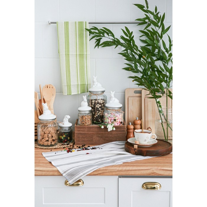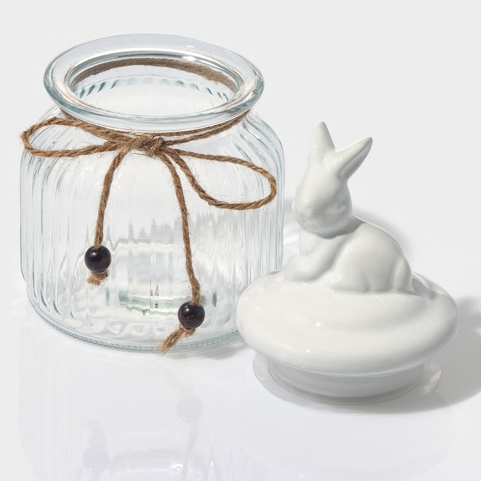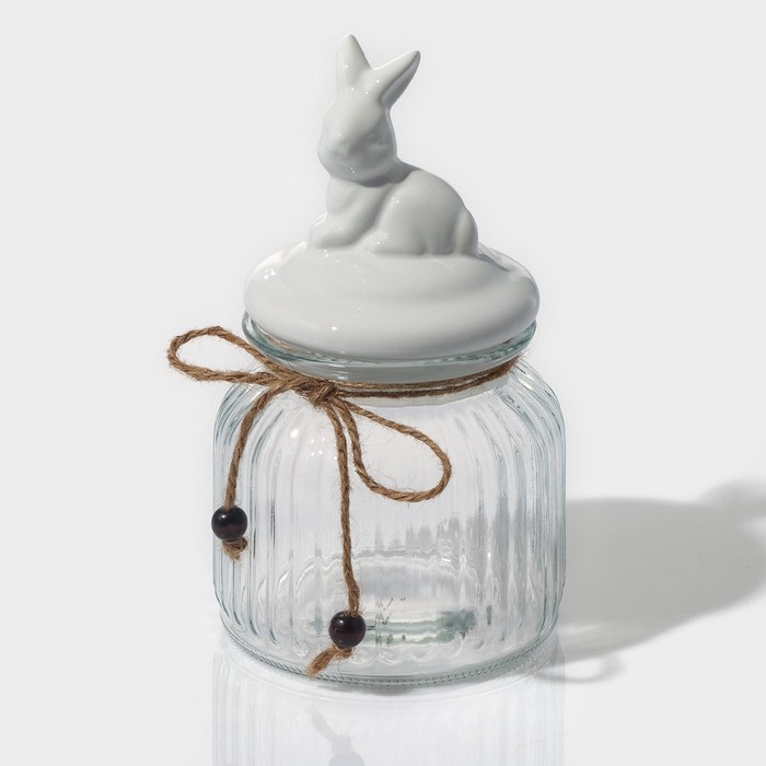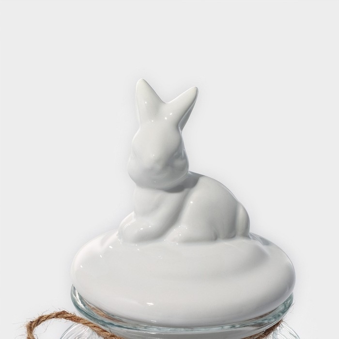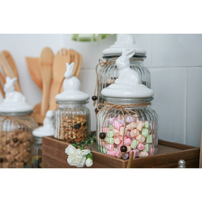Банка стеклянная для сыпучих продуктов с керамической крышкой Доляна «Зайка», 600 мл