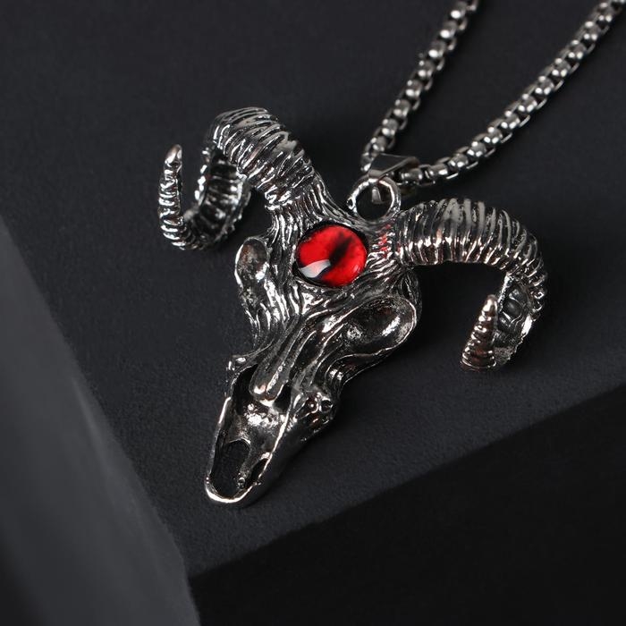 Кулон-амулет «Помпеи» рога, цвет красный в чернёном серебре, 70 см