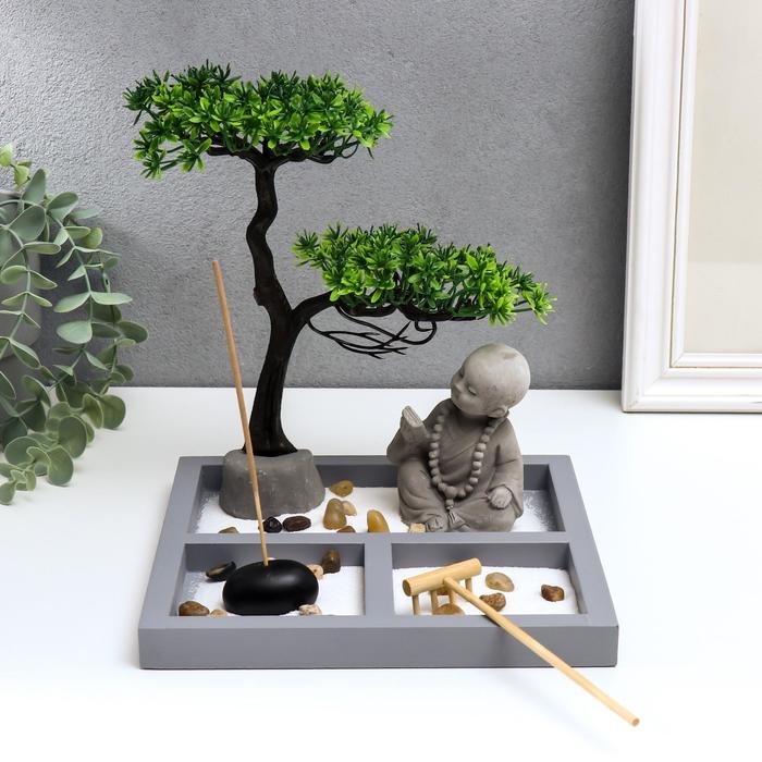 Сад Дзен "Маленький будда у дерева в саду" песок 22,5х20х19,8 см