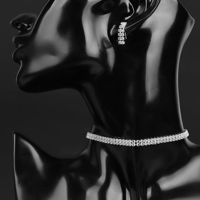 Набор 2 предмета: серьги, чокер «Лёд» два ряда, цвет белый в серебре, 32 см