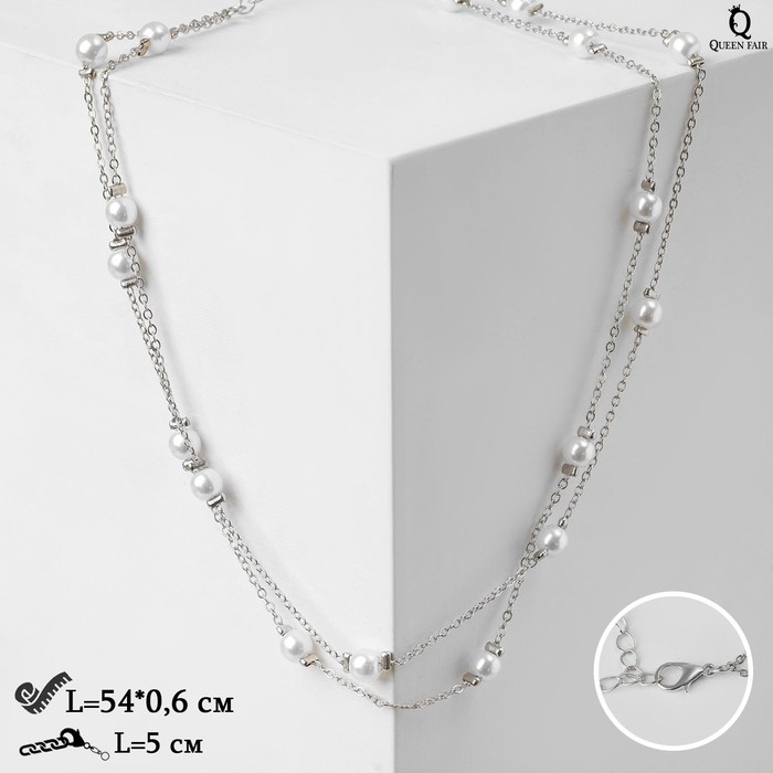 Бусы с жемчугом «Бусина» два ряда №4+6, цвет белый в серебре, 50 см