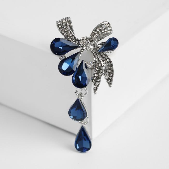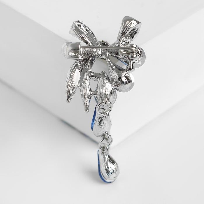 Брошь «Цветочная роса» с бантом, цвет бело-синий в серебре