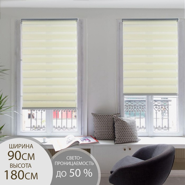 Штора рулонная «День-ночь», 90×180 см (с учётом креплений 3,5 см), цвет бежевый