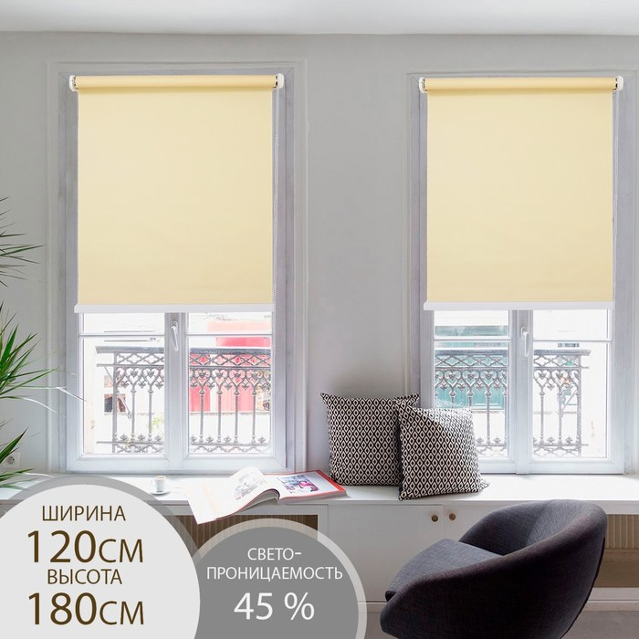Штора рулонная 120×180 см (с учётом креплений 3,5 см), цвет кремовый