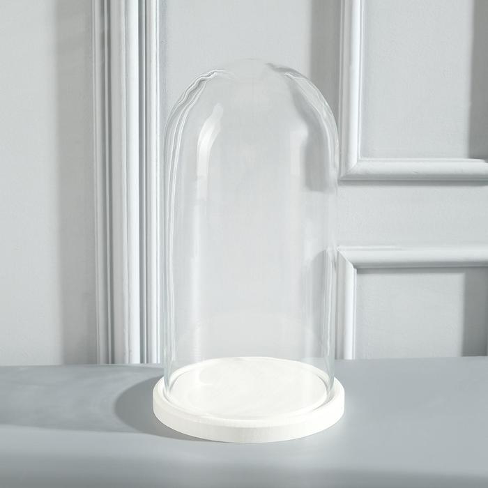 Стеклянный купол-клош на деревянной подставке "Венсан - 1", 25х15 см, белый