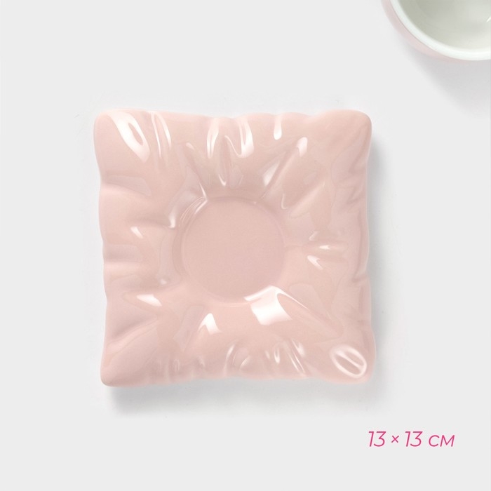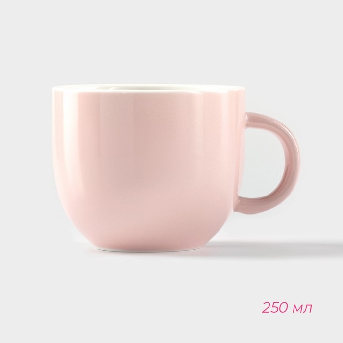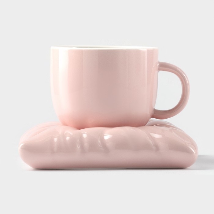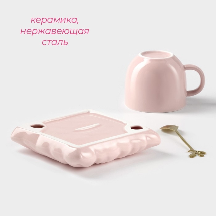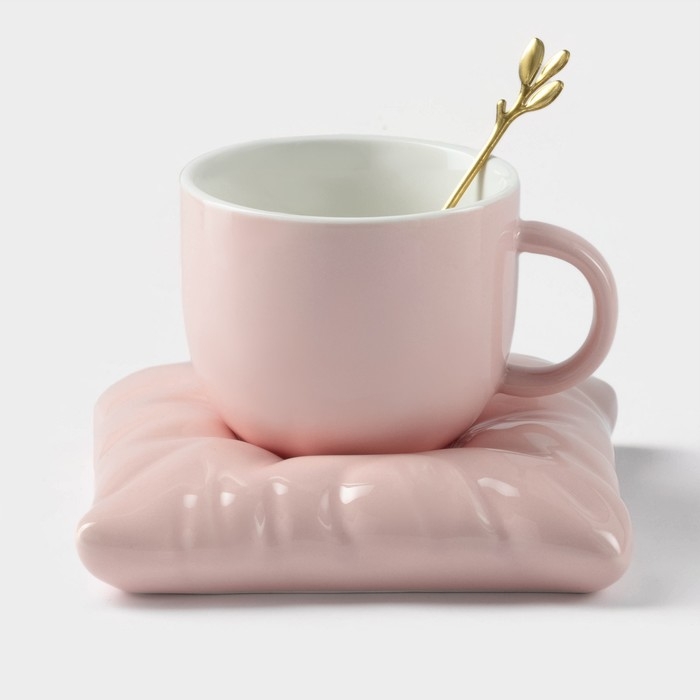 Чайная пара керамическая с ложкой «Зефирка», 2 предмета: чашка 250 мл, блюдце d=13 см, цвет розовый