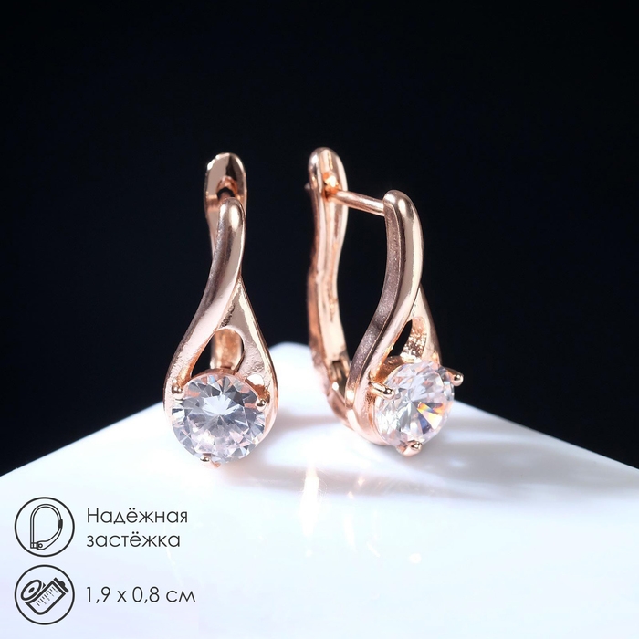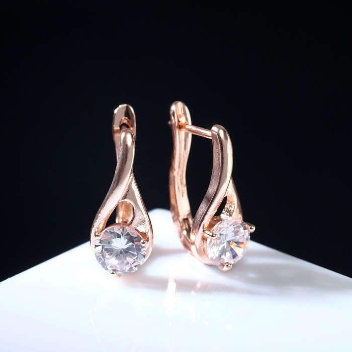 Серьги со стразами «Магия» бусинка в капле, цвет белый в розовом золоте