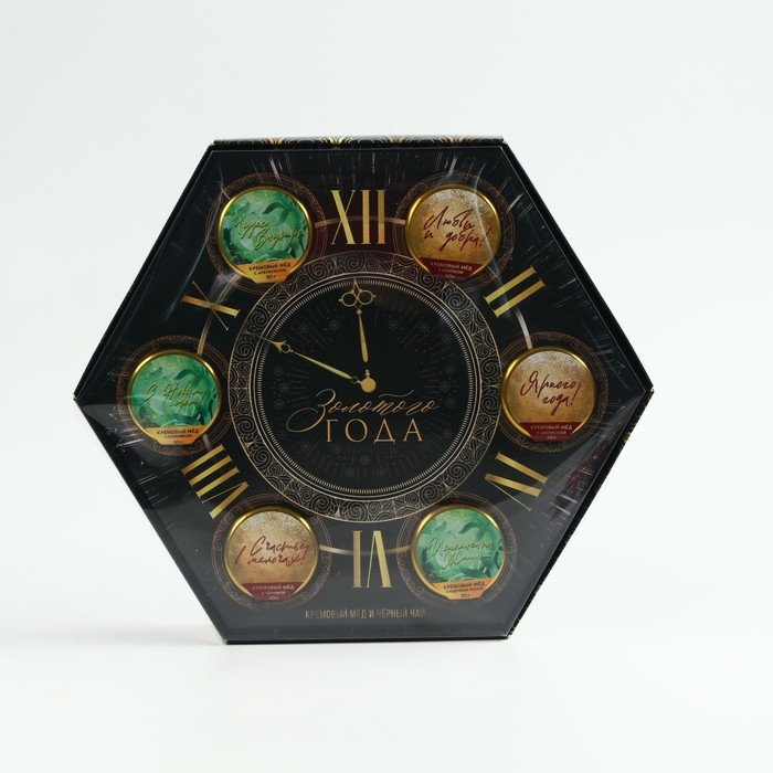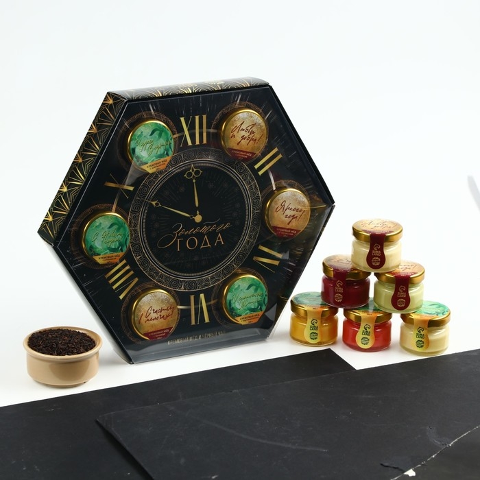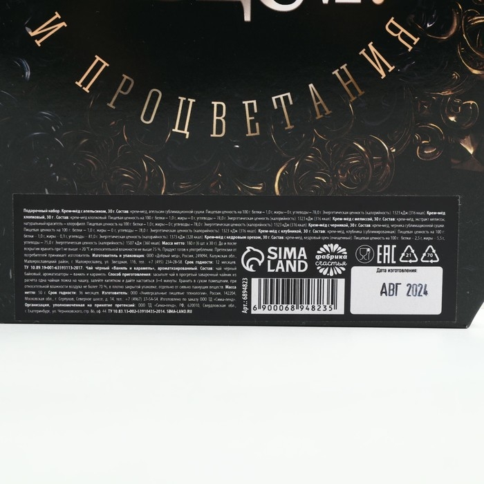 Подарочный набор «Золотого года»: чай с ванилью и карамелью 50 г., крем-мёд (6 шт. x 30 г.)
