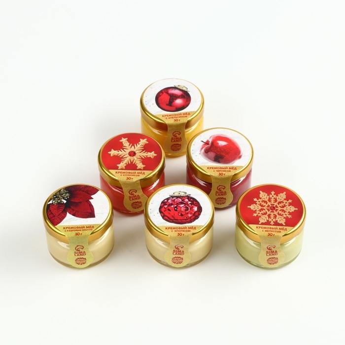 Подарочный набор «Счастливого Нового года»: чай чёрный 50 г., крем-мёд (6 шт. x 30 г)
