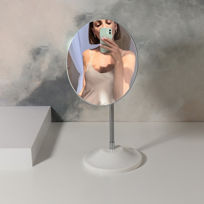 Зеркало настольное, на гибкой ножке, d зеркальной поверхности 15 см, цвет белый