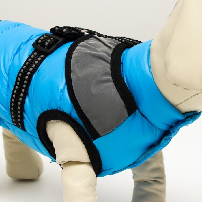 Куртка для собак со светоотражающей шлейкой, размер 12 (ДС 28, ОГ 38, ОШ 27), голубая