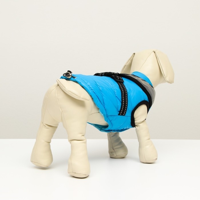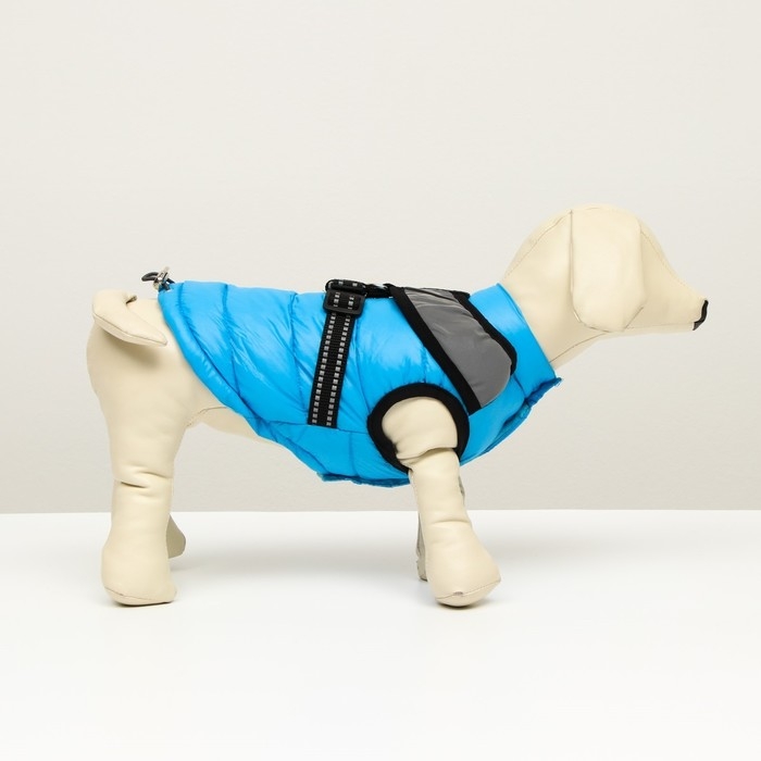 Куртка для собак со светоотражающей шлейкой, размер 14 (ДС 32, ОГ 42, ОШ 31), голубая