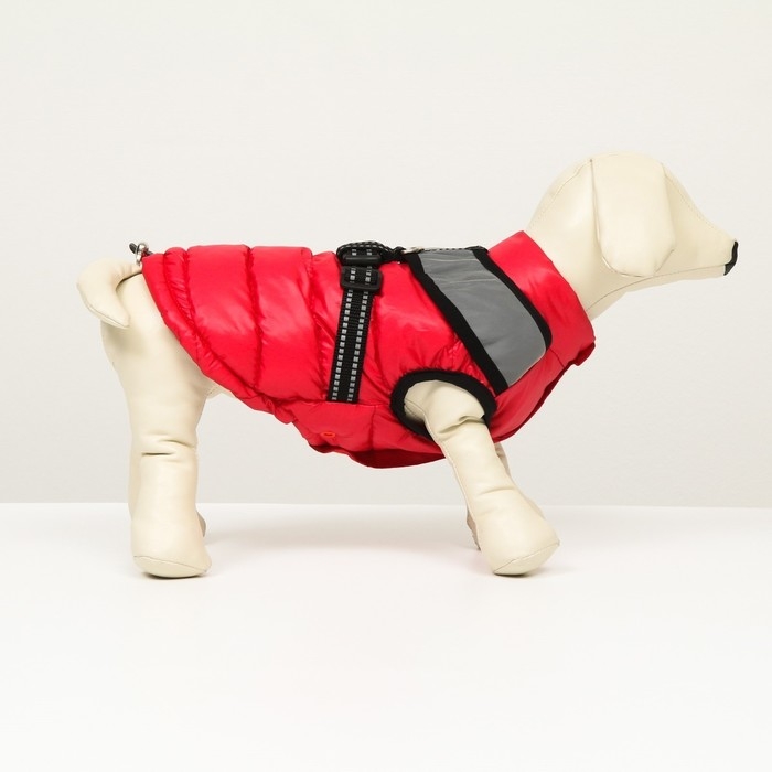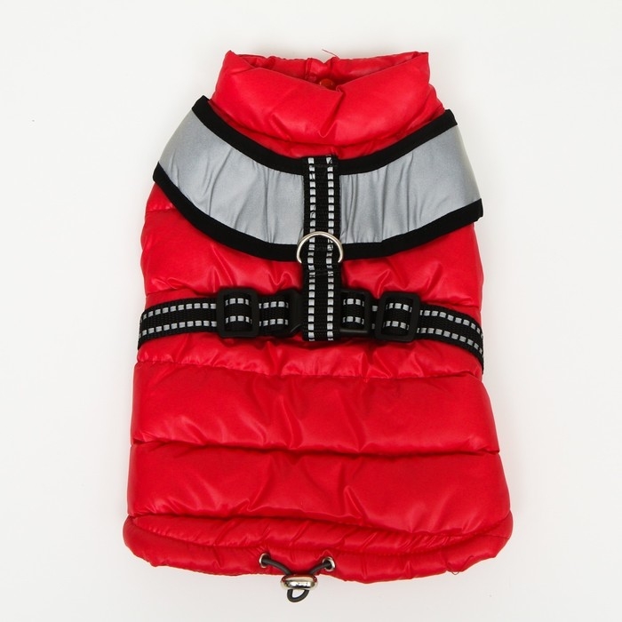 Куртка для собак со светоотражающей шлейкой, размер14 (ДС 32 ОГ 42 ОШ 31), красная