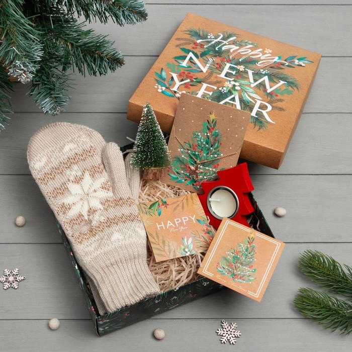 Новогодний подарочный набор New Year варежки р-р 19 и аксессуары