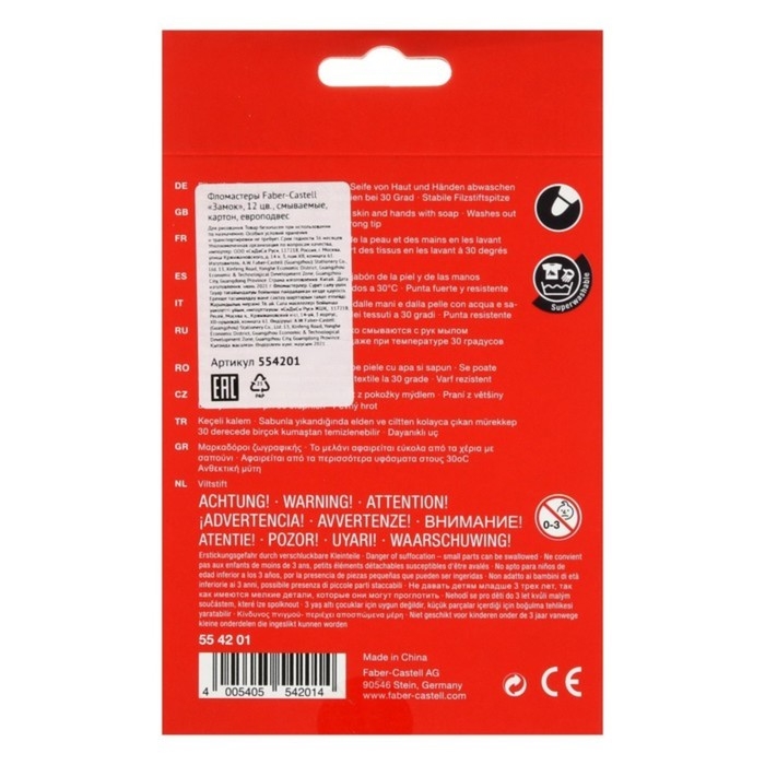 Фломастеры Faber-Castell «Замок» смываемые, в картонной коробке с европодвесом, 12 цветов