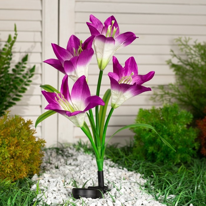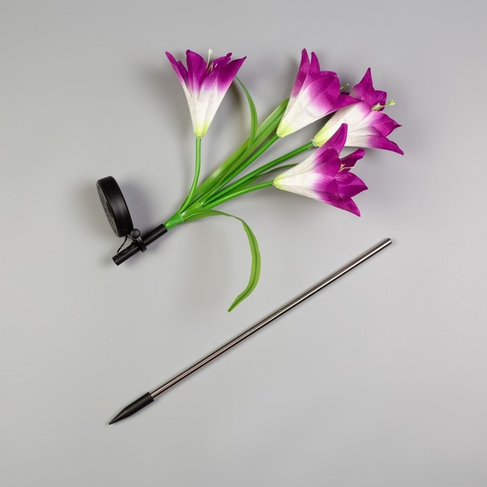 Садовый светильник на солнечной батарее «Лилия фиолетовая», 80 см, 4 LED, свечение мульти (RGB)