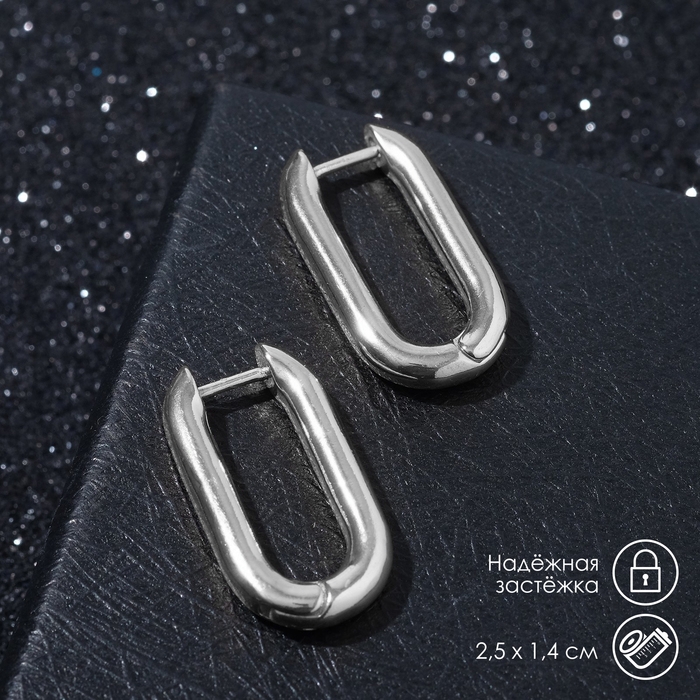 Серьги металл «Геометрия» объёмный овал, цвет серебро