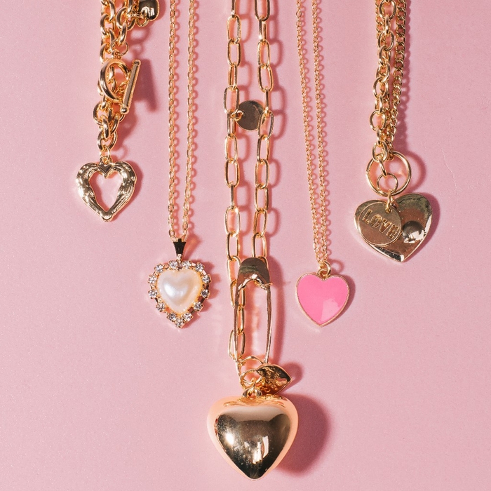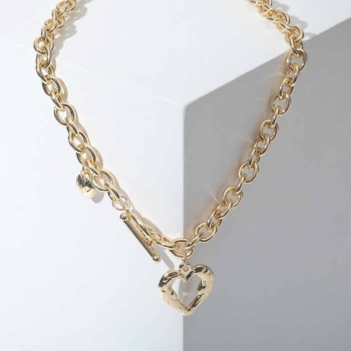 Колье «Цепь» сердце из коры, цвет золото, 46 см