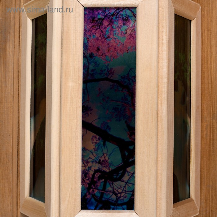 Абажур деревянный "Рисунок 1" со вставками из стекла с УФ печатью, малый, 33х29х12см