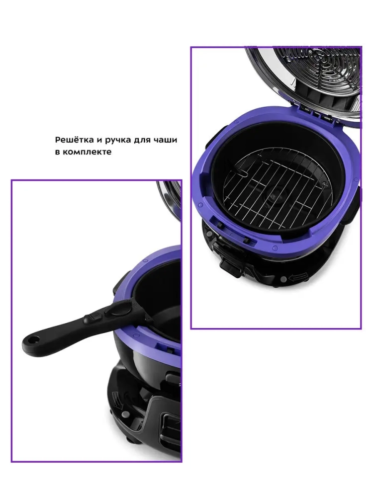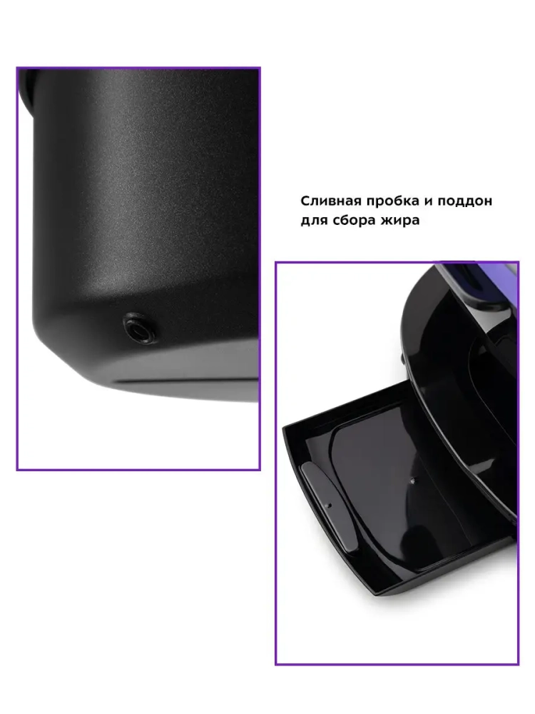 Аэрогриль оснащен электронным управлением и дисплеем, а также у прибора есть 6 автоматических программ. Вы можете начать приготовление в более позднее время, используя функцию отложенного старта.