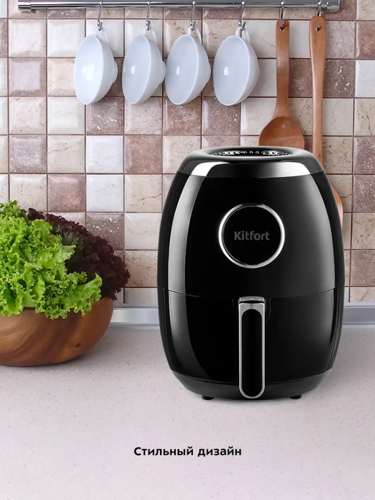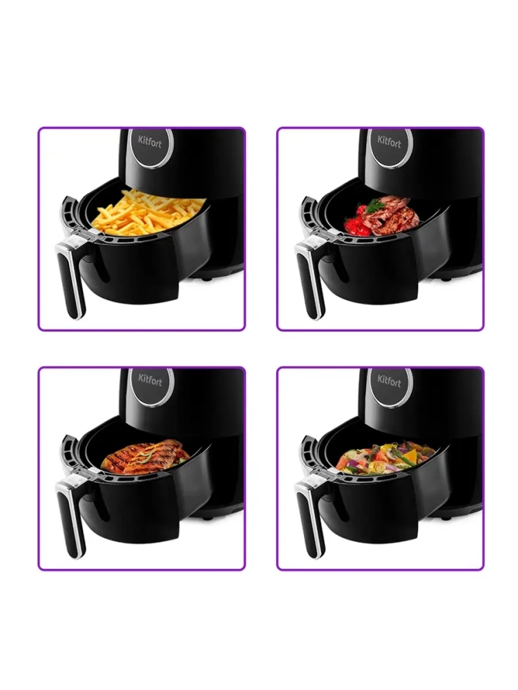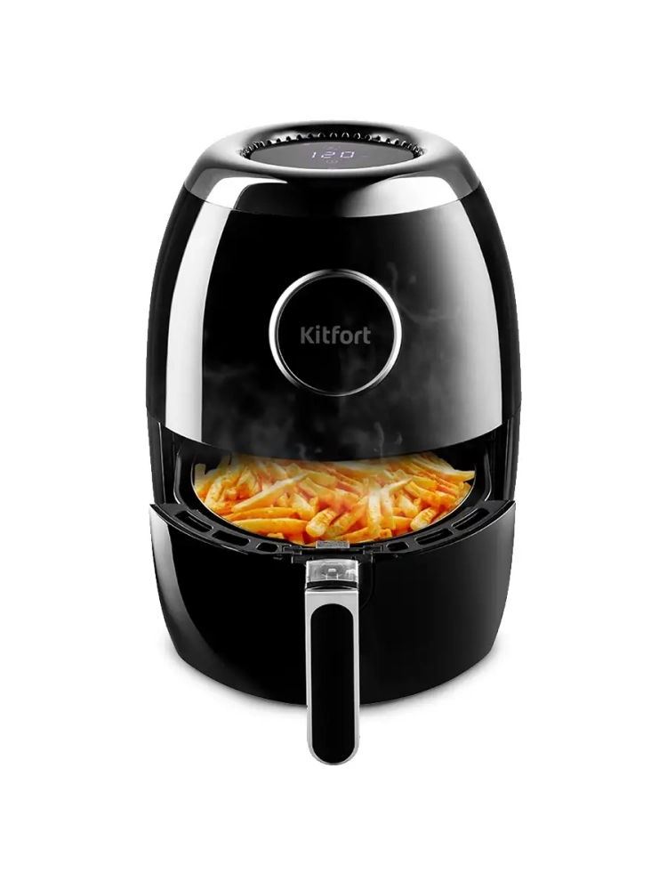 Современный аэрогриль Kitfort КТ-2234 интересен не только стильным дизайном: он может использоваться как аэрогриль, а также как аэрофритюрница и духовка.
